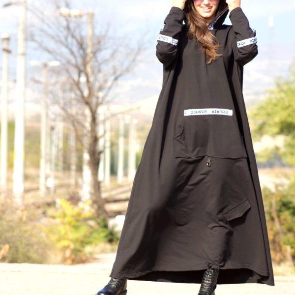 Модел 425 – Дълга черна рокля с дълъг ръкав