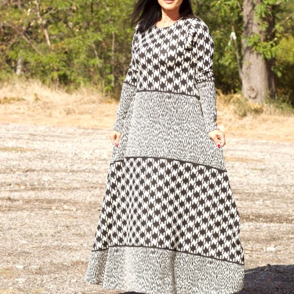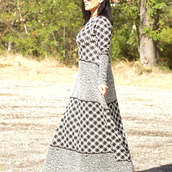 Модел 432 – Дълга дамска рокля с кожени ръкави