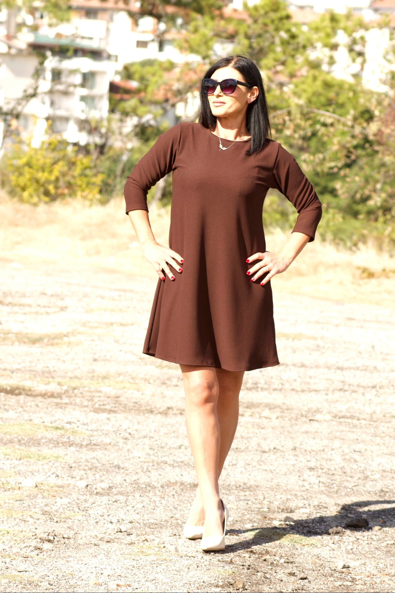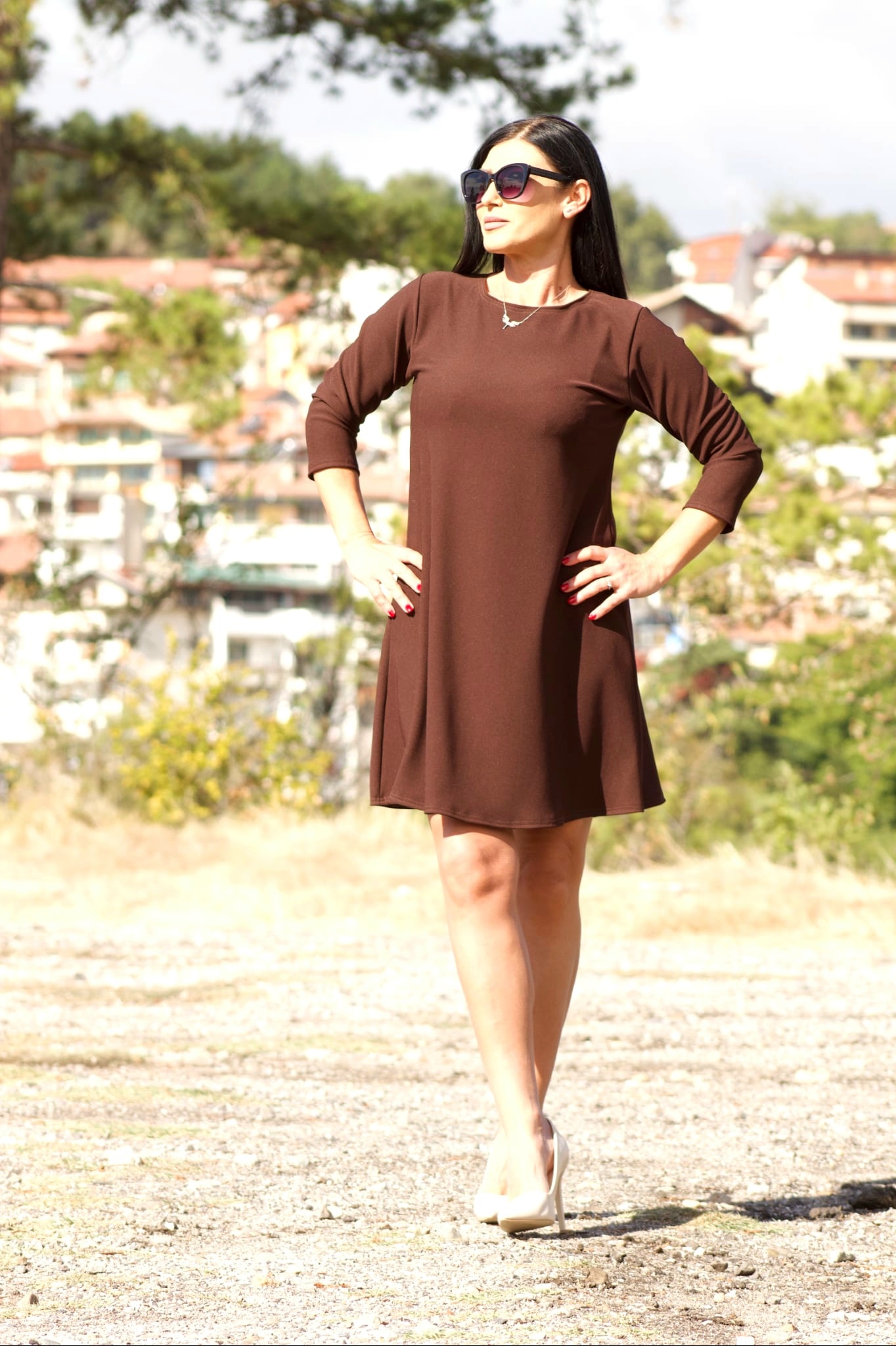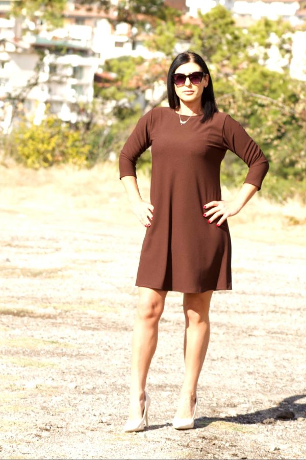 Модел 08 – Дамска рокля в сиво с кожени ръкави